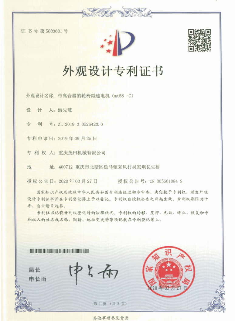 重慶茂田機械有限公司是國家級小巨人企業、國家高新技術企業、重慶市專精特新企業、重慶市知識產權優勢企業,致力于現代化山地農業機械、各類非標減速電機及其控制系統的研發、生產、銷售。擁有重慶市市級研發平臺1個 目前研發、生產、銷售產品廣泛應用于農業機械、醫療康復設備、交通代步工具、智能搬運設備、以及機器人動力系統等領域。我們的產品具有完整的自主知識產權,擁有多項專利技術及“重慶